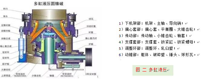 | 結(jié)構(gòu)組成 | 上機(jī)架,下機(jī)架,動(dòng)錐,傳動(dòng)軸,偏心套,液壓缸體 | 下機(jī)架,偏心套,傳動(dòng),支撐套,調(diào)整環(huán),動(dòng)錐 | 附圖一、圖二 |