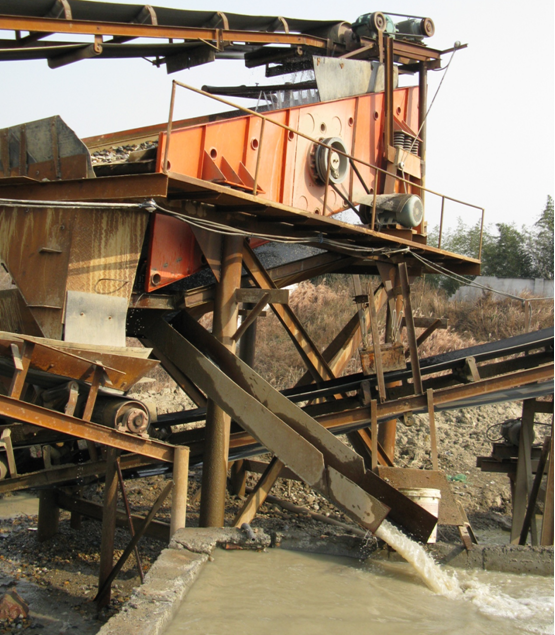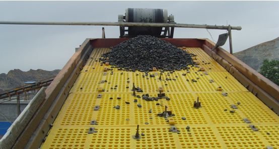 物料進(jìn)入顎式破碎機(jī)前要經(jīng)過一道振動(dòng)篩進(jìn)行預(yù)篩分,將小顆粒和粉塵物料篩去,因此要經(jīng)常清理振動(dòng)篩以防堵塞,并保證其篩分效果,避免大量粉塵物料進(jìn)入破碎系統(tǒng)而引起粉塵飛揚(yáng)。